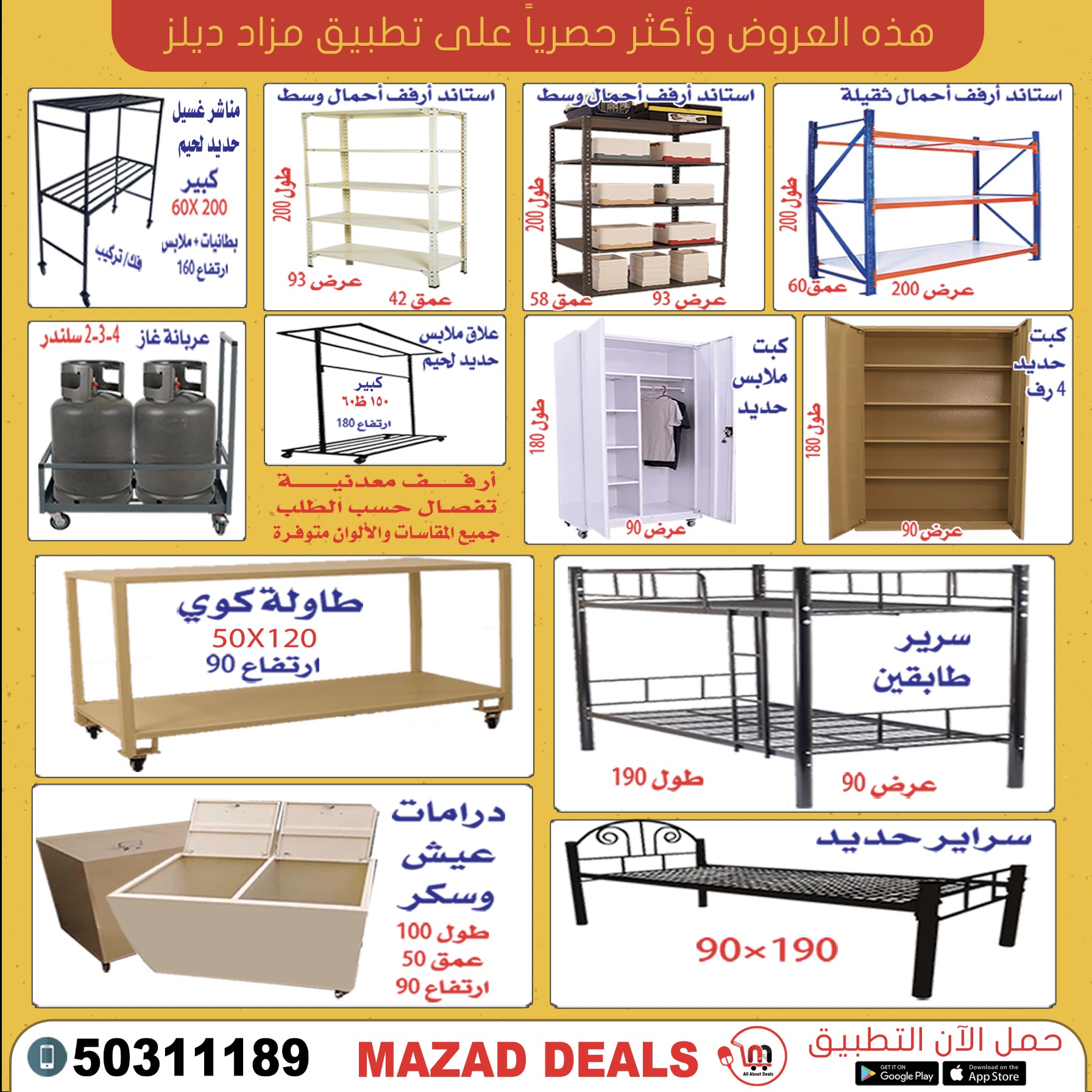 ارفف تخزين - كبتات - سراير دورين - درامات عيش - عربانة غاز