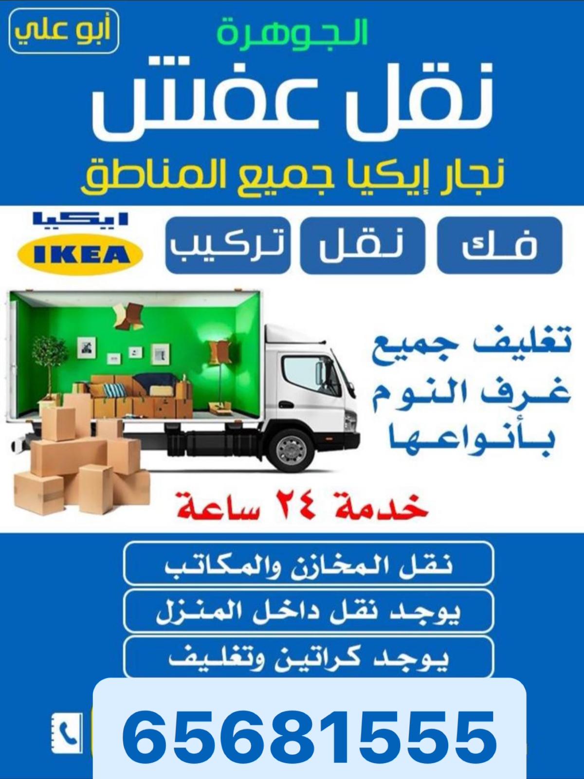 فك - نقل - تركيب نجار إيكيا جميع المناطق - تغليف جميع عرف النوم بأنواعها خدمة ٢٤ ساعة - نقل المخازن والمكاتب - يوجد نقل داخل المنزل - يوجد كراتين وتغليف