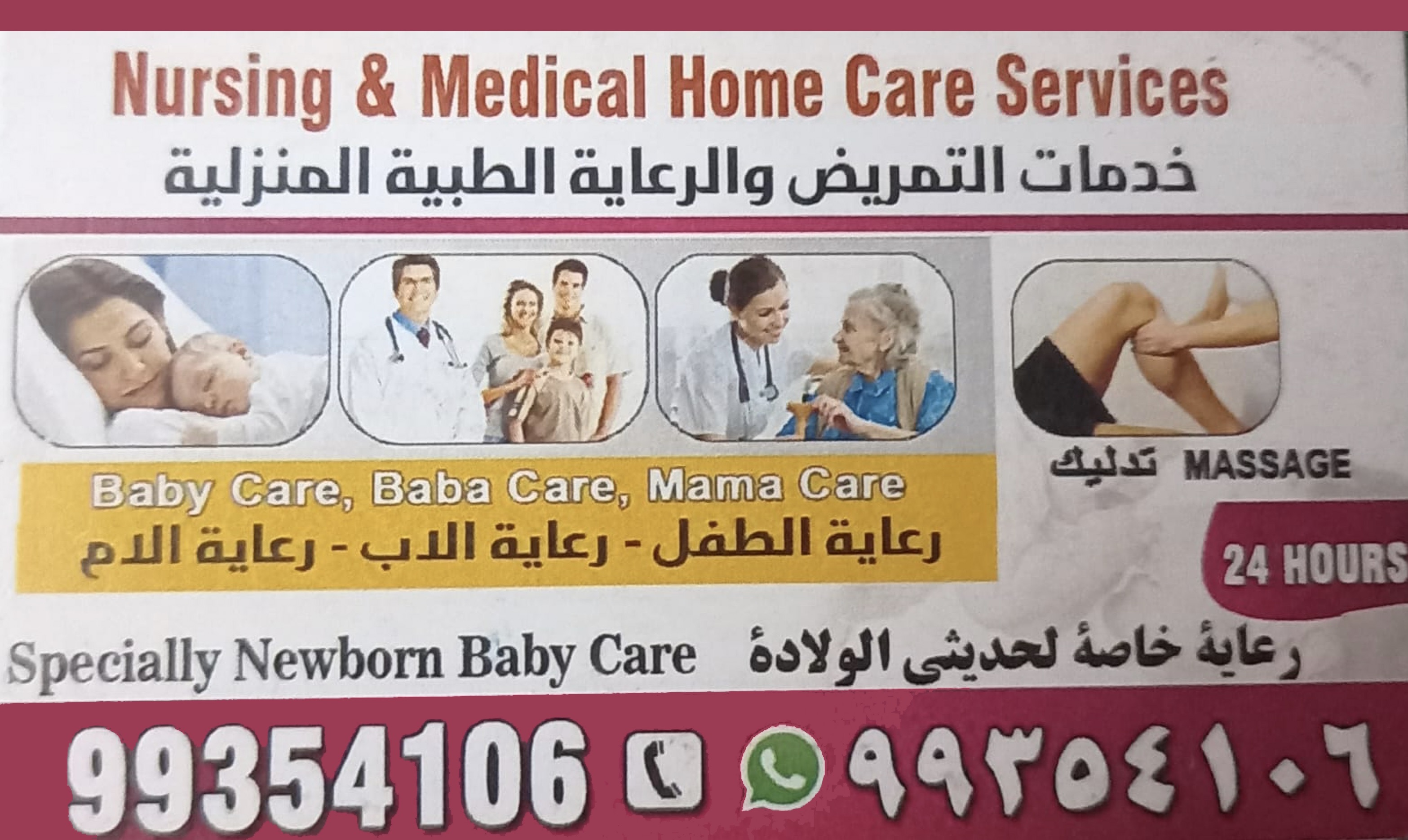 خدمات التمريض والرعاية الطبية المنزلية -رعاية الطفل - رعاية الاب -رعاية الام رعاية خاصة لحديثي الولادة