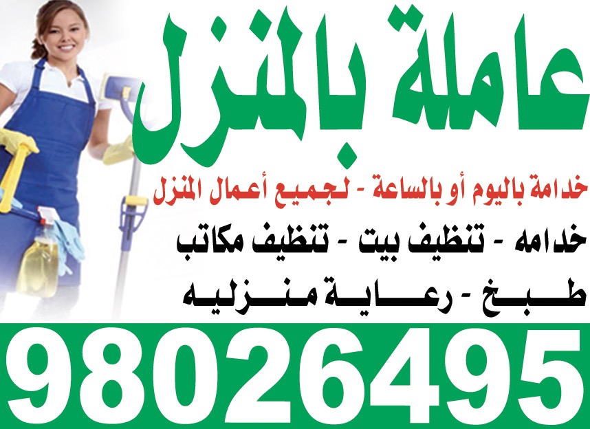 خدامة باليوم أو بالساعة - لـجـمـيـع أعـمال المنزل - خدامه - تنظيف بيت - تنظيف مكاتب طـــــبـــخ - رعــــــايـــة مــنــــزلـيــه