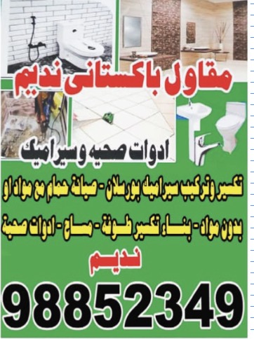 مقاول باكستاني نديم - ادوات صحية وسيراميك - تكسير وتركيب بورسلان - صيانة حمام مع مواد او بدون مواد - بناء تكسير طوقة - مساج ادوات صحية
