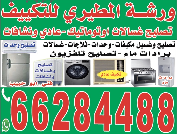 ورشة المطيري للتكييف - تصليح غسالات او توماتيك - عادي ونشافات- تصليح وغسيل مكيفات - واحدات - ثلاجات غسالات برادات ماد - تصليح تلفزيون