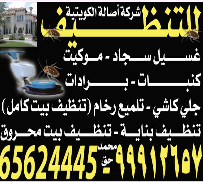 شركة أصالة الكويتية - للتنظيف - غسيل سجاد - موكيت - كنبات - برادات جلي كاش - تلميع رخام (