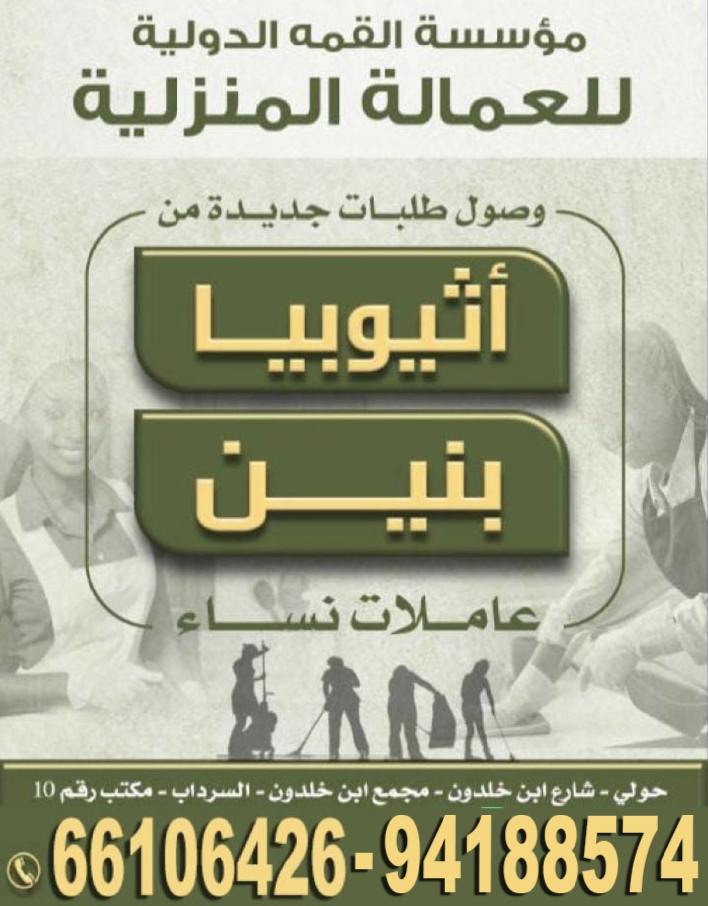 مؤسسة القمة الدولية - للعمالة المنزلية - وصول طلبات جديدة من أثيوبيا - بنين - عاملات نساء