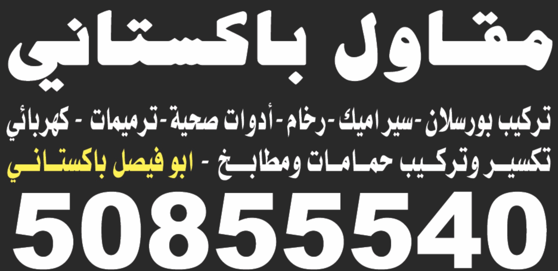 تركيب بورسلان-سيراميك-رخام-أدوات صحية-ترميمات - كهربائي تكسيــر وتركــيب حمــامــات ومطابـــخ - ابو فيصل باكستــانــي