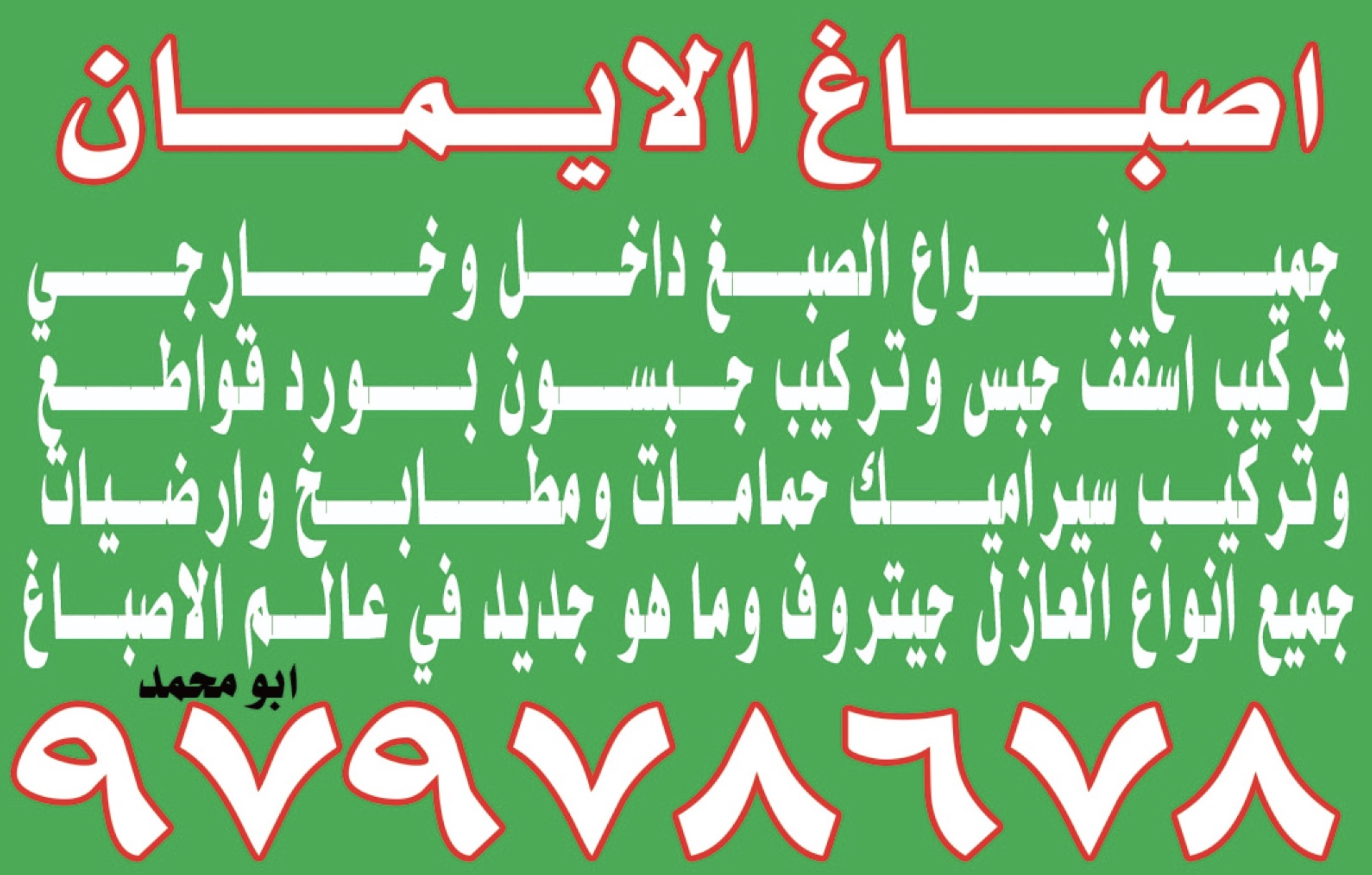 جميع آنواع الصبغ داخل وخارجي تركيب اسقف جبس وتركيب جبسون بورد قواطع وتركيب سيراميك حمامات ومطابخ وارضيات جميع انواع العازل جيتاروف وماهوجديد في عالم الاصباغ ابومحمد