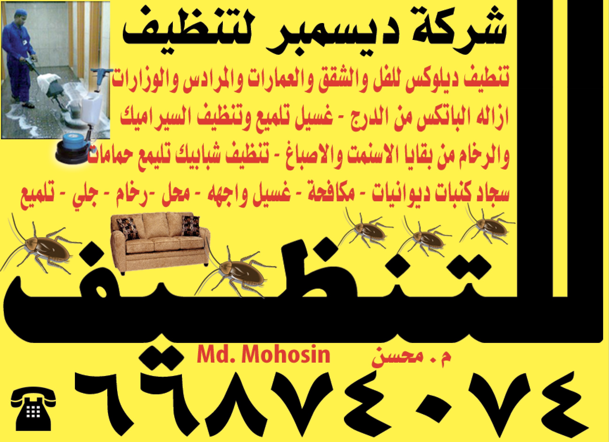 سجاد كنبات ديوانيات - مكافحة - غسيل واجهه - محل -رخام - جلي - تلميع 66874074