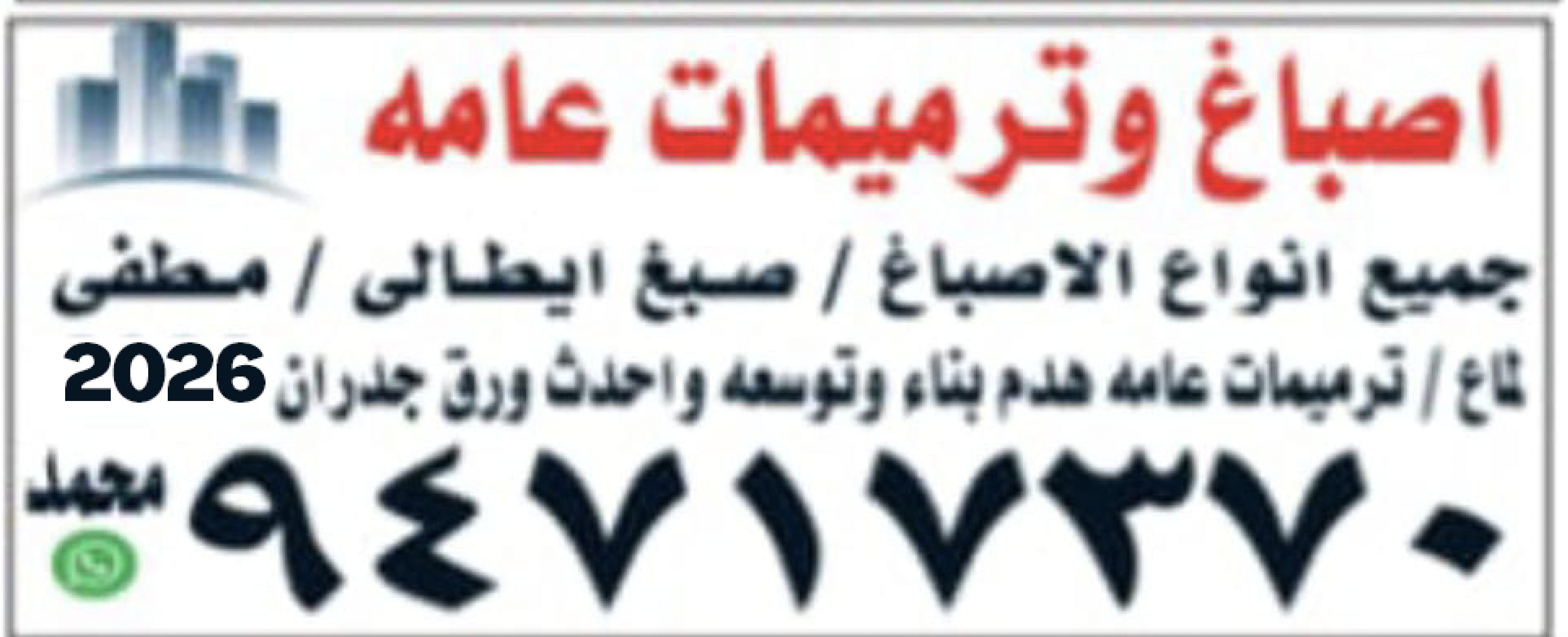 جميع أنواع الاصباغ - صبغ ايطالي - مطفي لماع - ترميمات عامة هدم بناء وتوسعة واحداث ورق جدران ٢٠٢٦ - ابو زياد