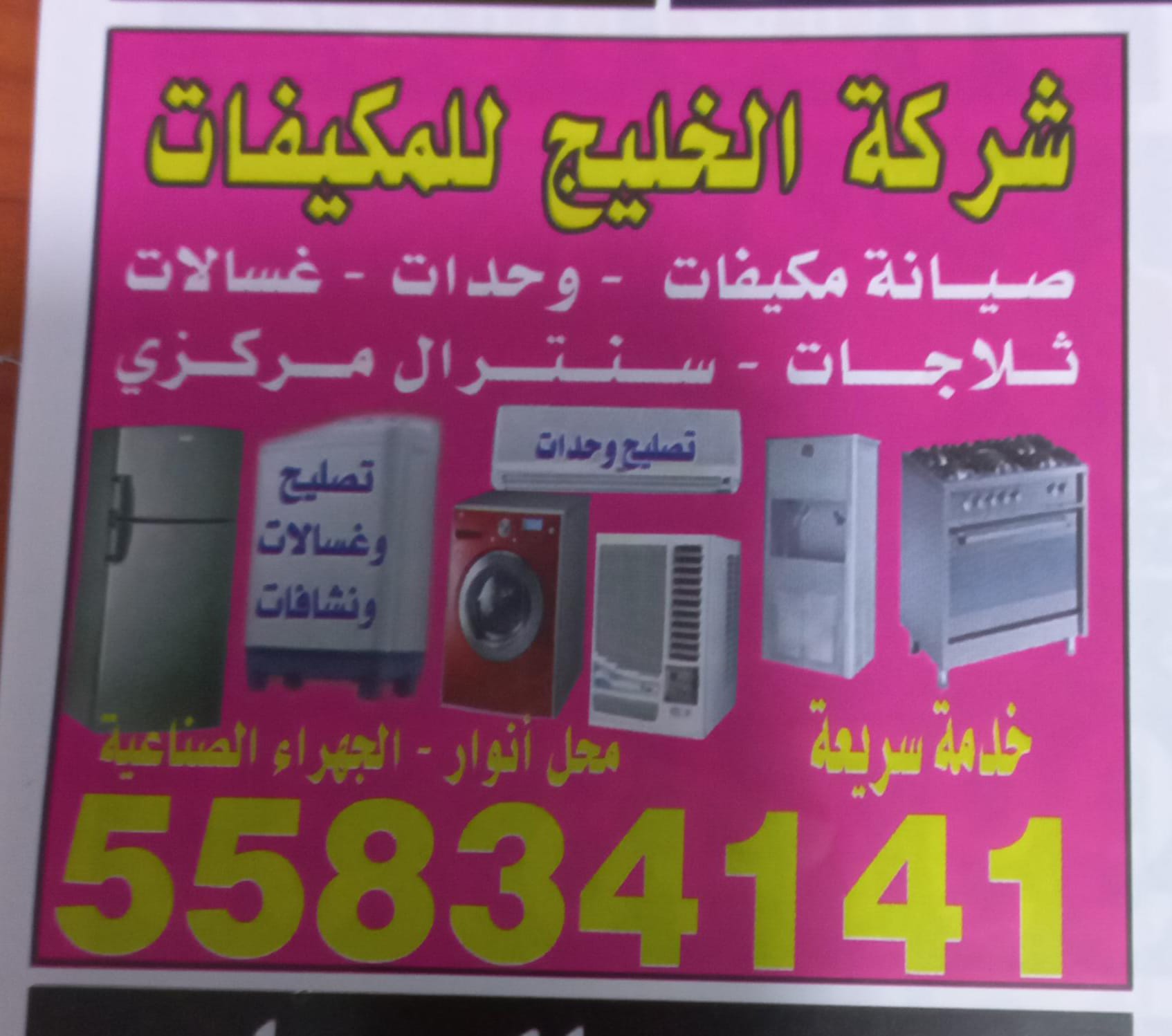 شركة الخليج للمكيفات صيانة مكيفات - وحدات - غسالات - ثلاجات - سنترال مركزي - خدمة سريعة - 55834141